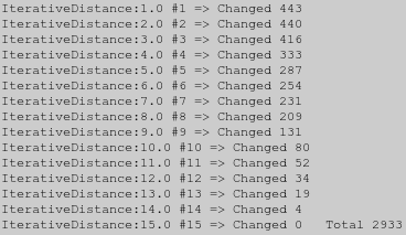 形態演算の反復(繰り返し)の結果を確認するには、「-define debug=True」オプションを設定して詳細な操作制御を有効にします。形態演算子が反復処理を行うと、反復の増加する回数と、各反復ステップによって画像のピクセルがいくつ変更されたかが報告されます。出力は標準エラーに出力されるため、画像の結果をパイプで接続することもできます。たとえば、画像全体が白で塗りつぶされ、画像に対してこれ以上変更が行われなくなるまで、より大きな「Octagon」カーネルを使用して単一ピクセル画像を「Dilate」します。「-1」の反復制限は、永遠に、または変更が見られなくなるまで反復することを意味します。