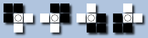 半径1では、「Diamond」カーネルと同じカーネルが得られます。このため、デフォルトのオクタゴンのサイズは半径「2」です。| この時点からは、特別なkernel2imageスクリプトを使用してカーネルの画像を生成します。これは(上記のように)生の「dilate-scale」メソッドを使用するよりもはるかに明確です。ただし、カーネルは一般的に非常に小さいですが、OctagonカーネルとDiskカーネル(次を参照)は、特定の用途では非常に大きくなる可能性があることを覚えておいてください。 |